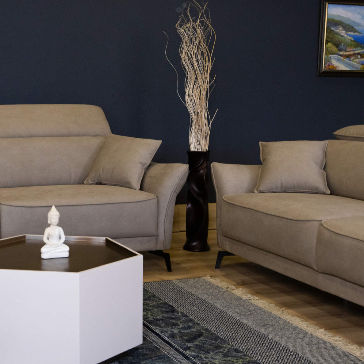 • Κάθισμα : σταθερό αφρώδες υλικό με λάστιχα επαναφοράς που διατηρούν το αρχικό σχήμα του καναπέ – μέτρια σκληρότητα καθίσματος