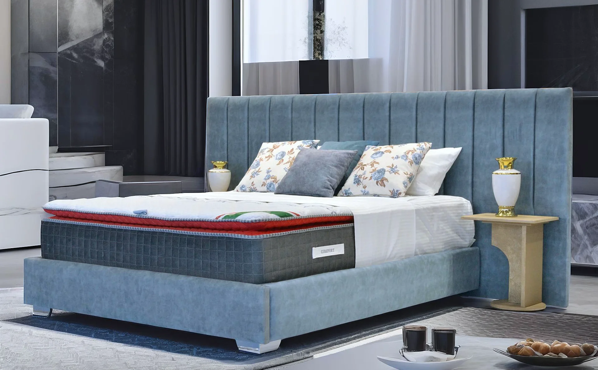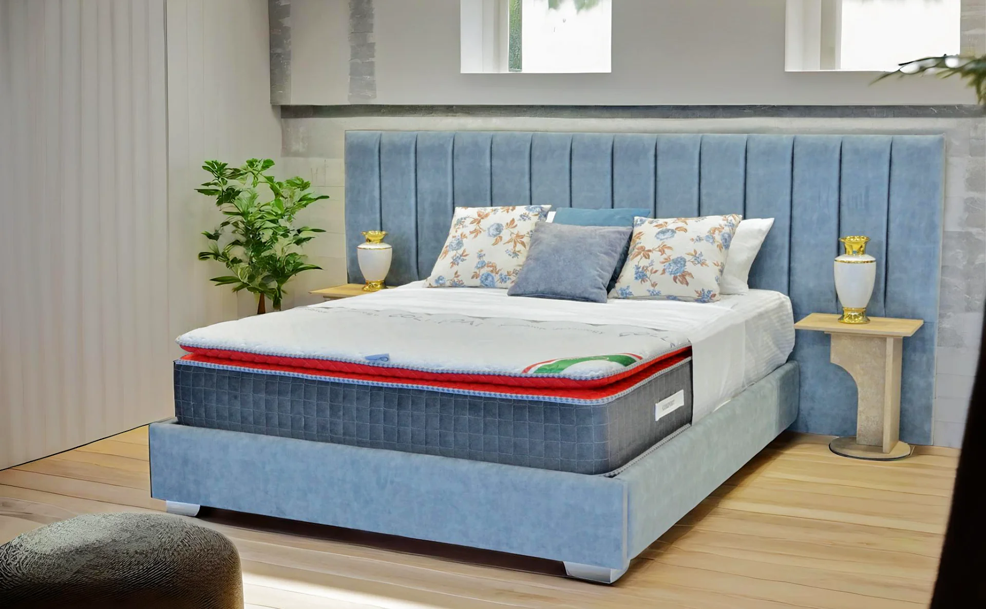 Η κρεβατοκάμαρα Lisa 82265 συνδυάζει κομψότητα και λειτουργικότητα, καθιστώντας την ιδανική για τουριστικά καταλύματα που επιθυμούν να προσφέρουν άνεση και στυλ στους επισκέπτες τους. Με διάσταση στρώματος 200 x 160 cm, προσφέρει ευρύχωρο χώρο ύπνου. Το καπιτονέ κεφαλάρι της προσδίδει μια αίσθηση πολυτέλειας, ενώ τα κρυφά ξύλινα πόδια ενισχύουν την αισθητική του κρεβατιού. Διατίθεται σε μεγάλη ποικιλία αδιάβροχων και αλέκιαστων υφασμάτων ή τεχνόδερμα, επιτρέποντας την προσαρμογή της στις προτιμήσεις του καταλύματός σας. Υπάρχει δυνατότητα αλλαγής διάστασης κατά παραγγελία, καθώς και προσθήκης αποθηκευτικού χώρου με επιπλέον κόστος, προσφέροντας πρακτικές λύσεις για την αποθήκευση. Η χειροποίητη κατασκευή της συνοδεύεται από 7ετή εγγύηση (εξαιρούνται τα υφάσματα), διασφαλίζοντας μακροχρόνια ποιότητα και αξιοπιστία.