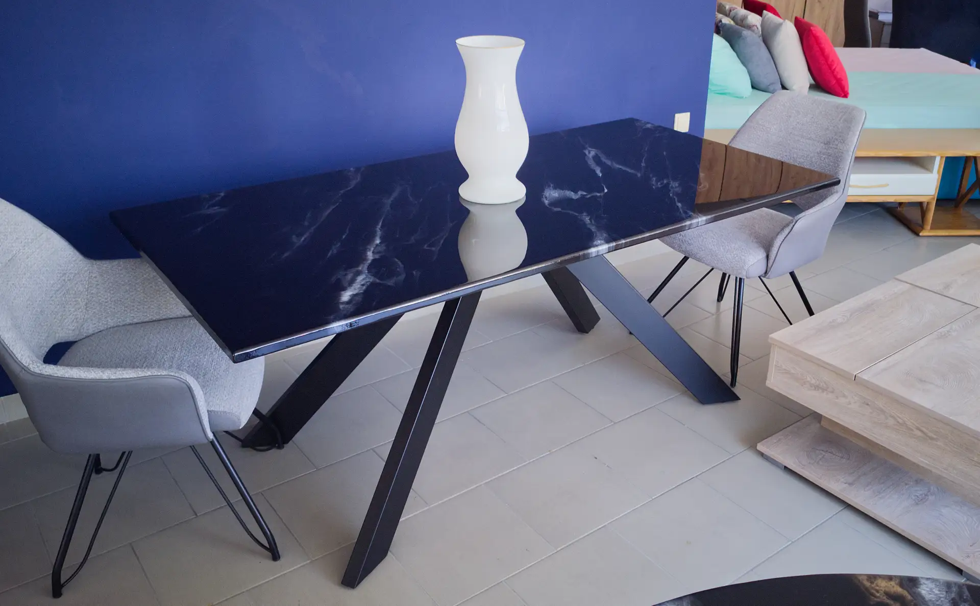Η Luxury Τραπεζαρία Rockwell εντυπωσιάζει με τον συνδυασμό της εκλεπτυσμένης επιφάνειας και της μοντέρνας βάσης της. Το γεωμετρικό σχέδιο της βάσης προσφέρει μοναδικότητα και σταθερότητα, ενώ η επιφάνεια τραπεζιού αντανακλά την κομψότητα και τη διαχρονικότητα.