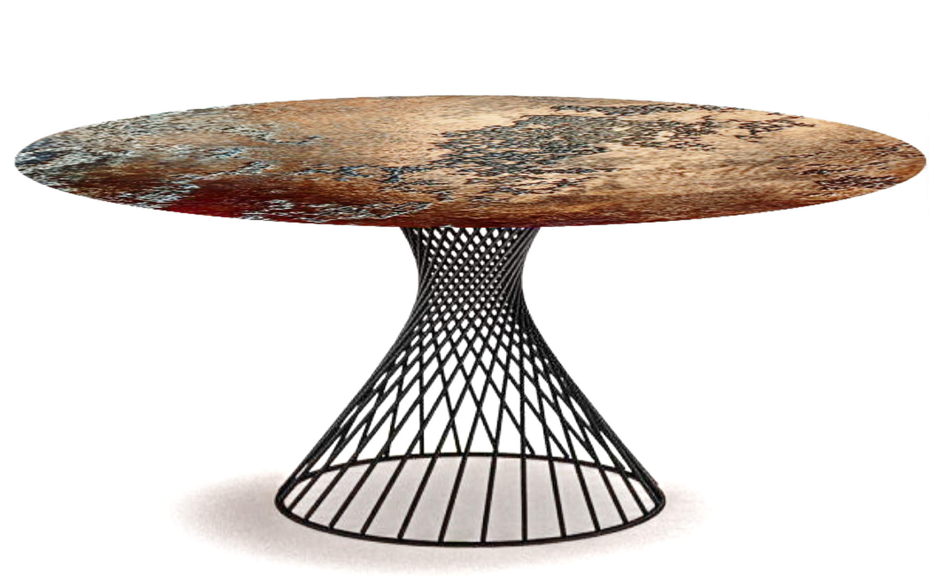 Η Luxury Τραπεζαρία Strata διαθέτει καλλιτεχνική βάση και επιφάνεια εμπνευσμένη από φυσικές υφές. Διαστάσεις: Φ 100 ή 120 x 74 εκ.