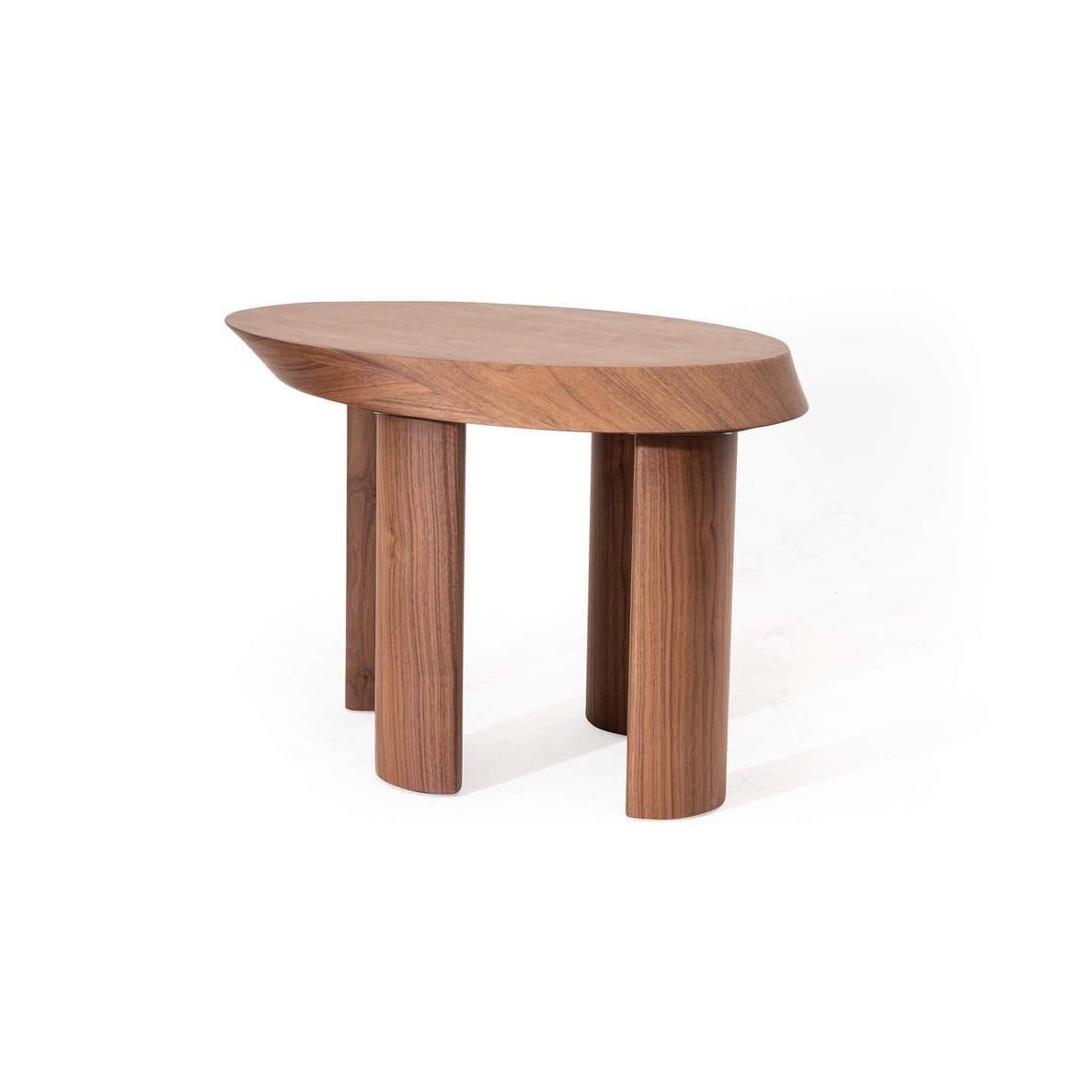 Σετ 3 τραπεζιών σαλονιού Mission με εμφάνιση καρυδιάς και minimal σχεδιασμό. Περιλαμβάνει τραπέζια σε οβάλ, στρογγυλό και βοηθητικό σχήμα που προσφέρουν ζεστασιά και λειτουργικότητα σε κάθε χώρο.