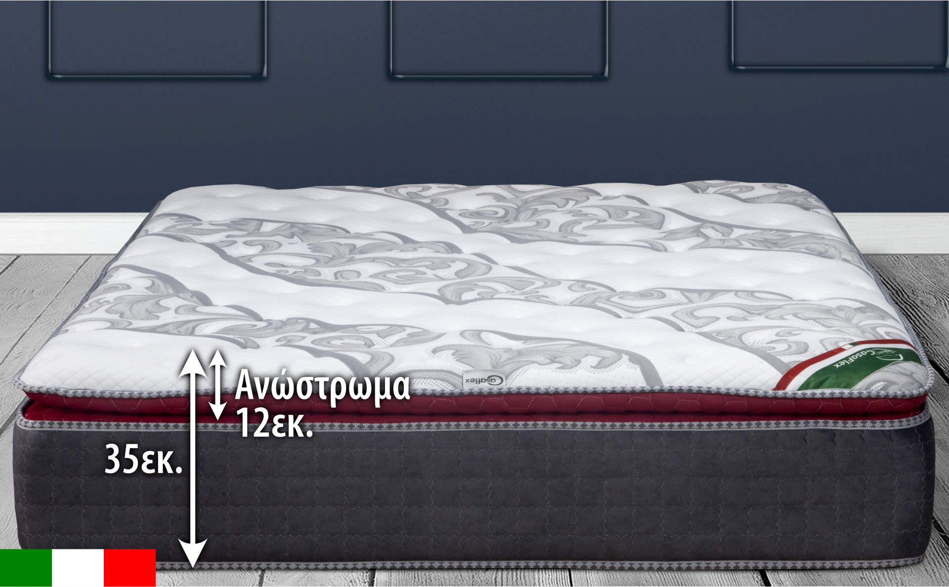 Το στρώμα FANTASIA 82279 συνδυάζει πολυτελή άνεση και καινοτόμο σχεδιασμό, καθιστώντας το ιδανική επιλογή για τουριστικά καταλύματα που θέλουν να προσφέρουν μία ανεπανάληπτη εμπειρία ύπνου. Με συνολικό πάχος 35 cm και ανώστρωμα 12 cm, παρέχει εξαιρετική υποστήριξη και απαλή αίσθηση. Η κατασκευή του ενσωματώνει προηγμένα υλικά που εξασφαλίζουν εξαιρετικό αερισμό και υγιεινή, ενώ το ανώστρωμα είναι αφαιρούμενο για εύκολη συντήρηση. Το προϊόν διατίθεται σε ποικιλία διαστάσεων και συνοδεύεται από πολυετή εγγύηση, διασφαλίζοντας τη μακροχρόνια ποιότητά του.