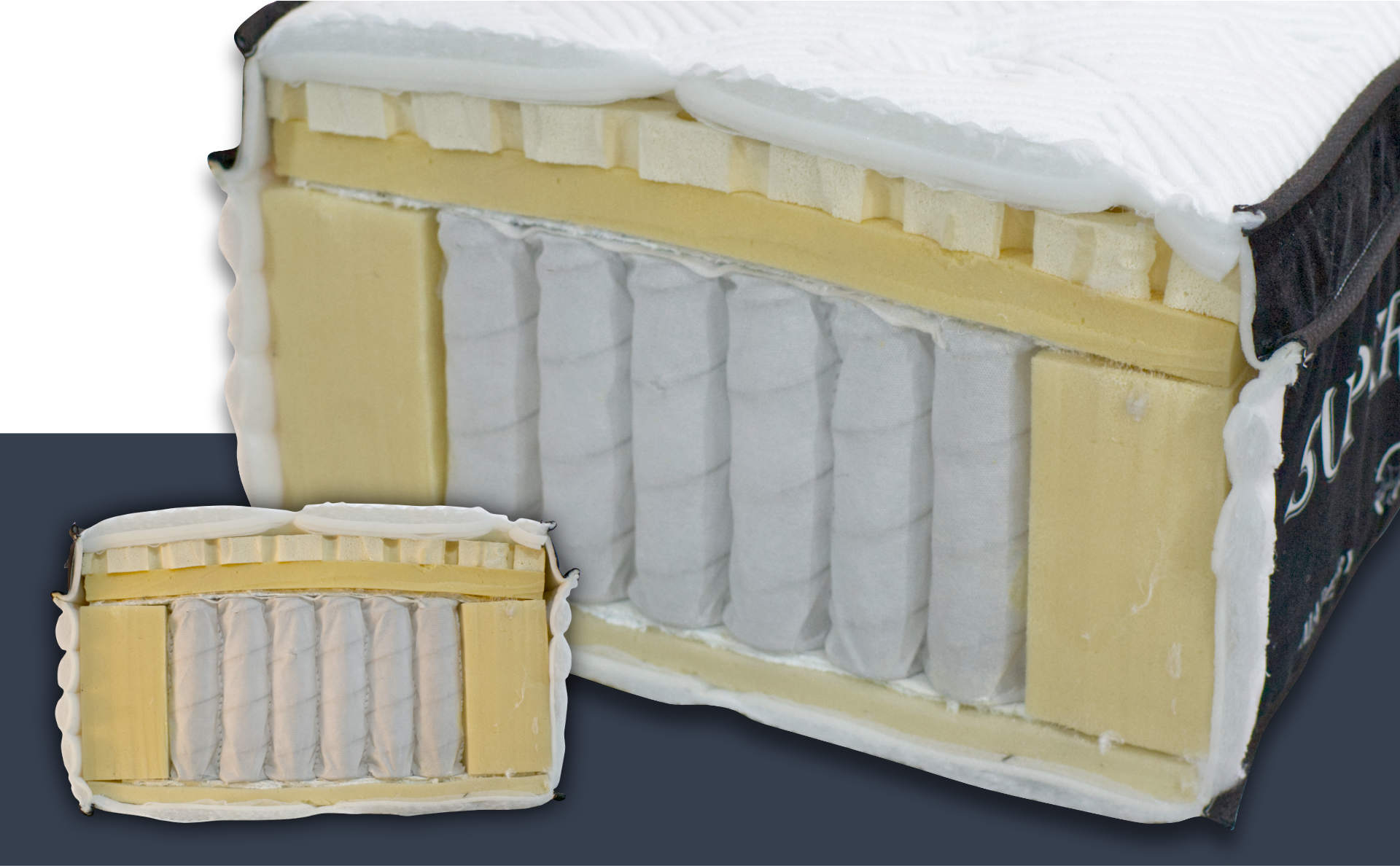 Σύστημα ελατηρίων Ελατήρια που παράγονται από χάλυβα υψηλής περιεκτικότητας σε μαγγάνιο με μεγάλη διάρκεια ζωής, πολύ καλά στη στήριξη μεγάλων βαρών. Προστατεύουν τη φυσιολογική ισορροπία της σπονδυλικής στήλης. Χρησιμοποιούμε επικαλυμμένα και ανεξάρτητα ελατήρια Pochet, MiniPochet, MicroPochet σύμφωνα με το πρότυπο.