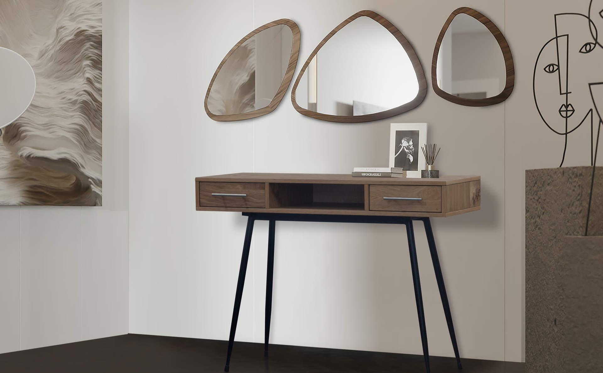 Βοηθητικά κομοδίνα, εξυπηρετικές συρταριέρες, όλα σχεδιασμένα εργονομικά με την καλύτερη ποιότητα.